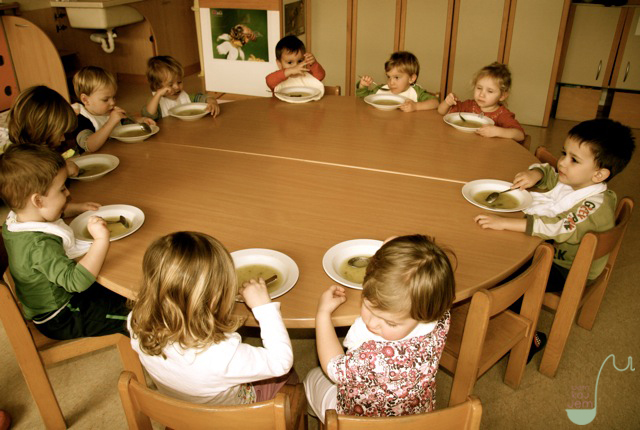 Otroci so narezane sestavine v velikem pričakovanju odnesli kuharicam v kuhinjo ter nato juhico v času kosila z zanimanjem okušali - in tudi vso pojedli ;)